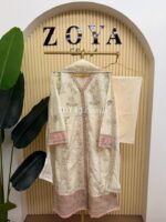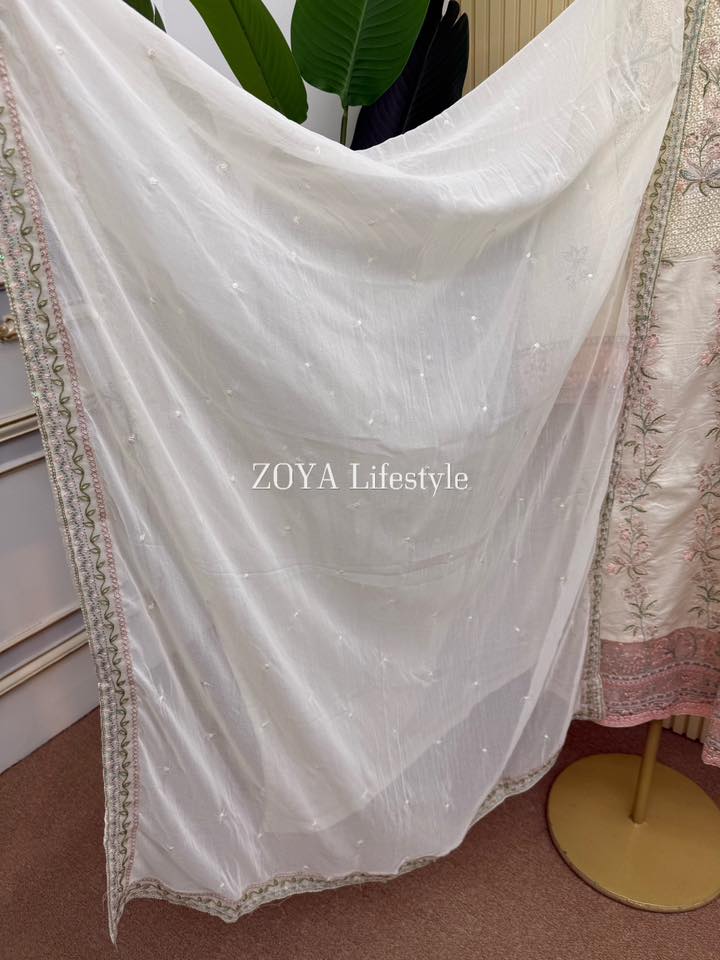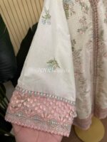 Material: Cotton kamiz with embroidery & sequins work on full front part. Maslin embroidered pannel on daman. You may need to wear inner. Pant Cotton. Chiffon dupatta with embroidery & sequins work.