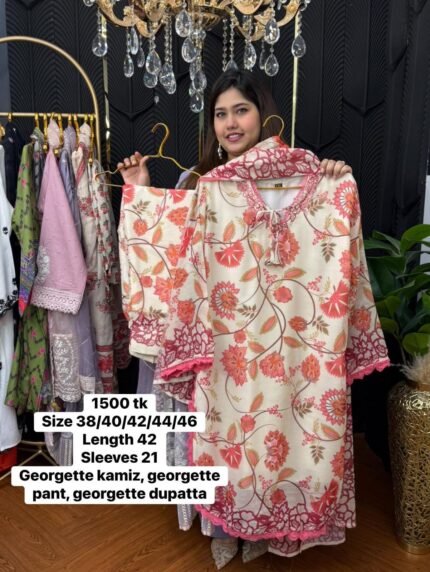 Size: kamiz chest 38/40/42/44/46. length 37 inches. sleeves length 23 inches. Pant free size waist with elastic, pant length 39 inches.