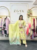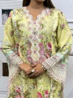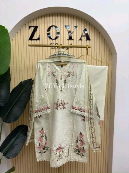 Material: Cotton kamiz with embroidery work on body , side border and damaam. Embroidered maslin panel in sleeves. Printed Pant Cotton. Kota cotton orna.