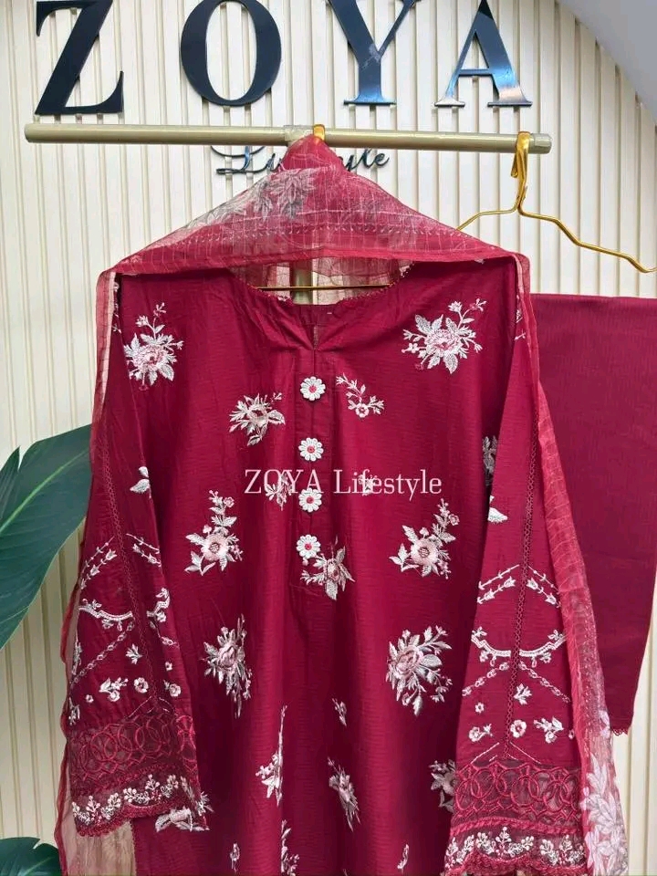 Material: Jacquard Cotton kamiz with embroidery work on full body and sleeves.