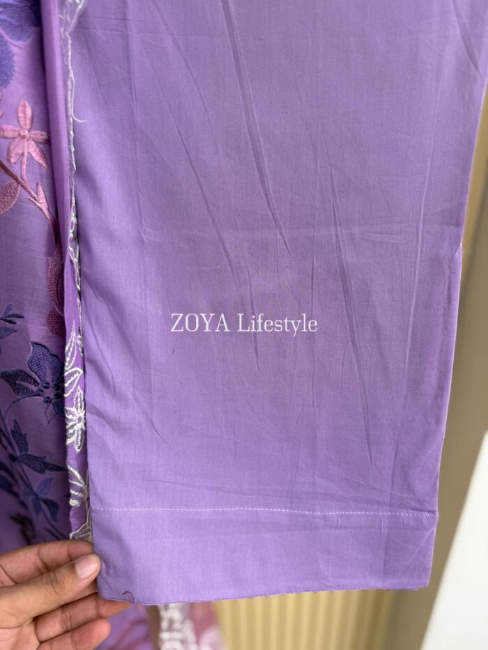 Material: Cotton kamiz with embroidery work on full body. Kota silk shaded orna with four sided embroidered border. Pant Cotton.