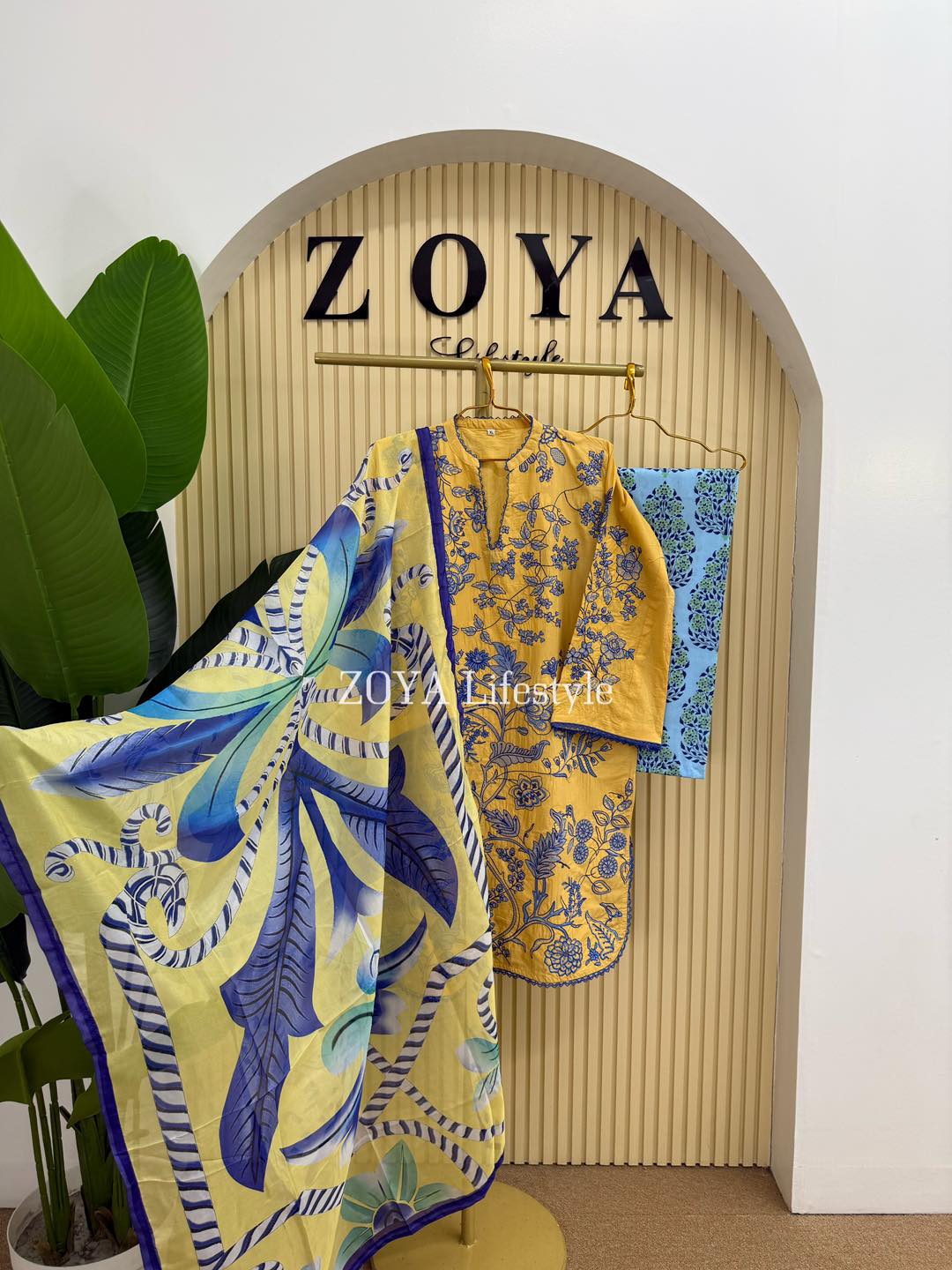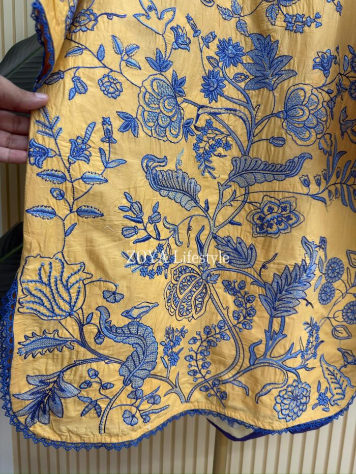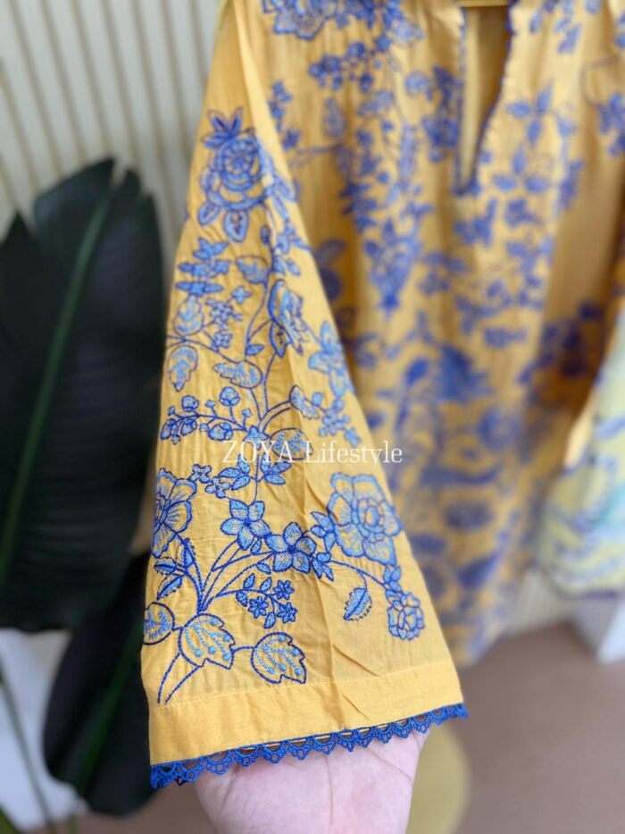 Material: Cotton kamiz with embroidery work on full body. Pant Cotton silk printed. Premium silk printed dupatta.