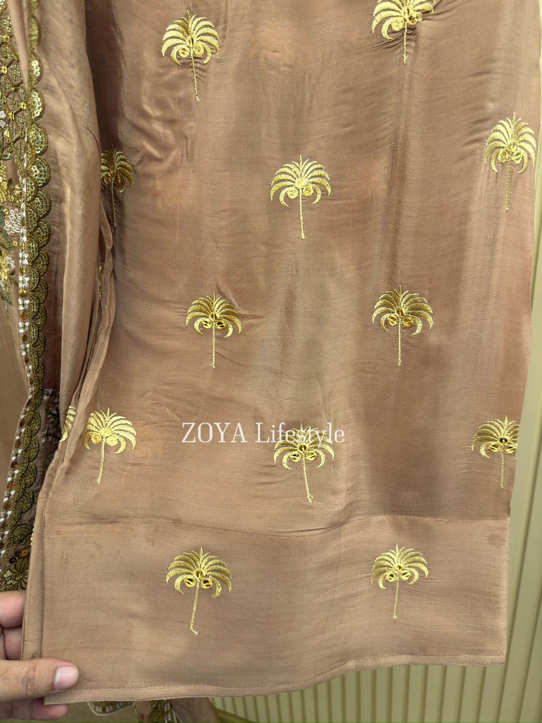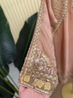 Material: Premium chinnon silk with heavy embroidery and sequins work on all over body front. Chinnon silk pant with embroidery & sequins work.