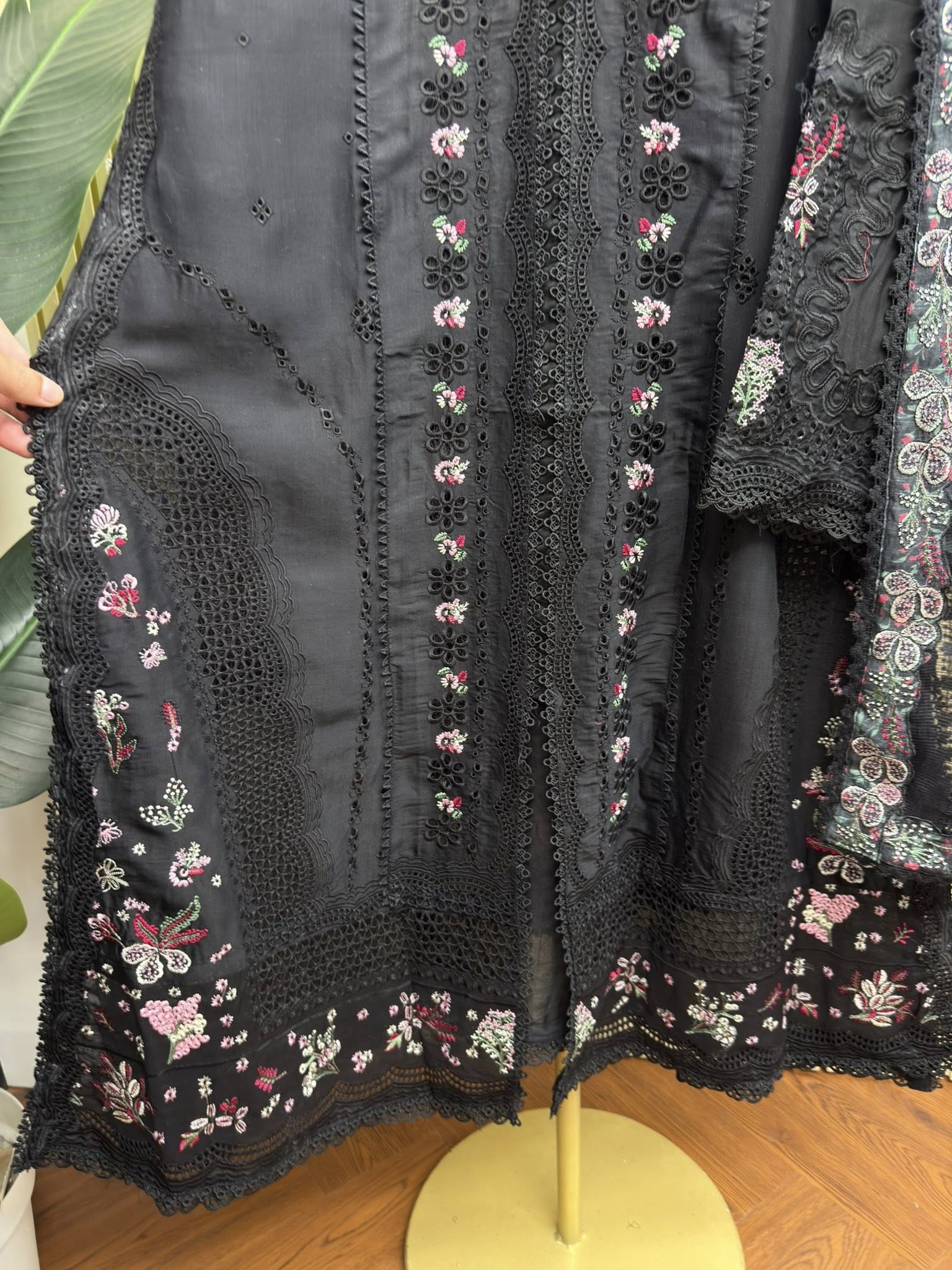 Material: Premium Cotton with embroidery & chikankari work on all over body. Kota embroidered orna. Premium Cotton Pant with embroidery work.